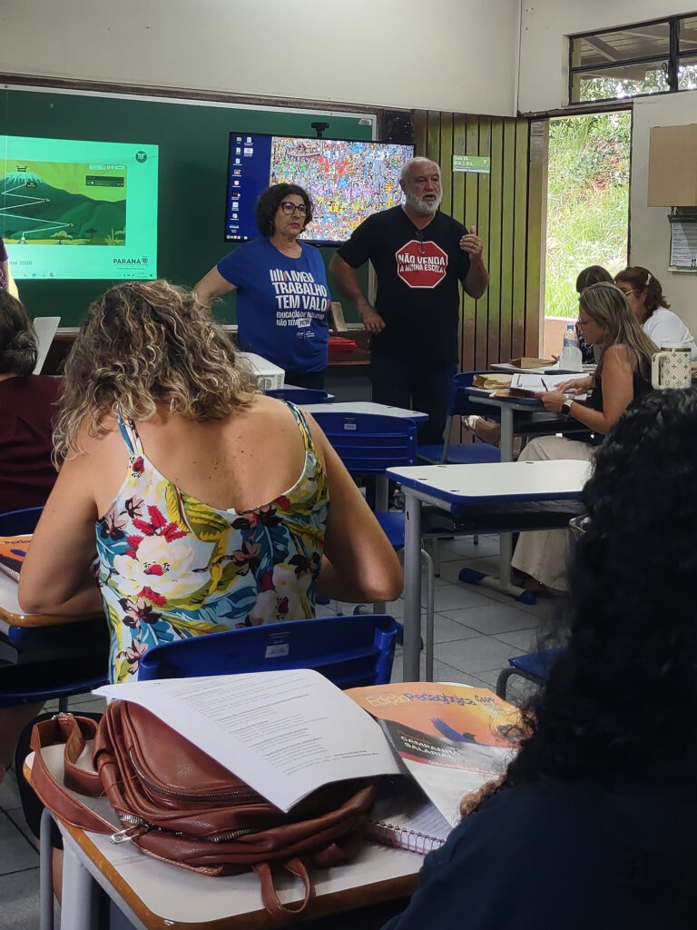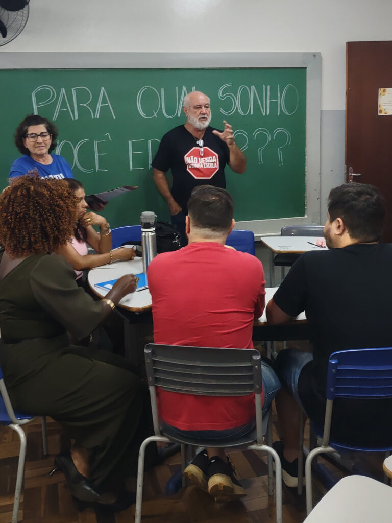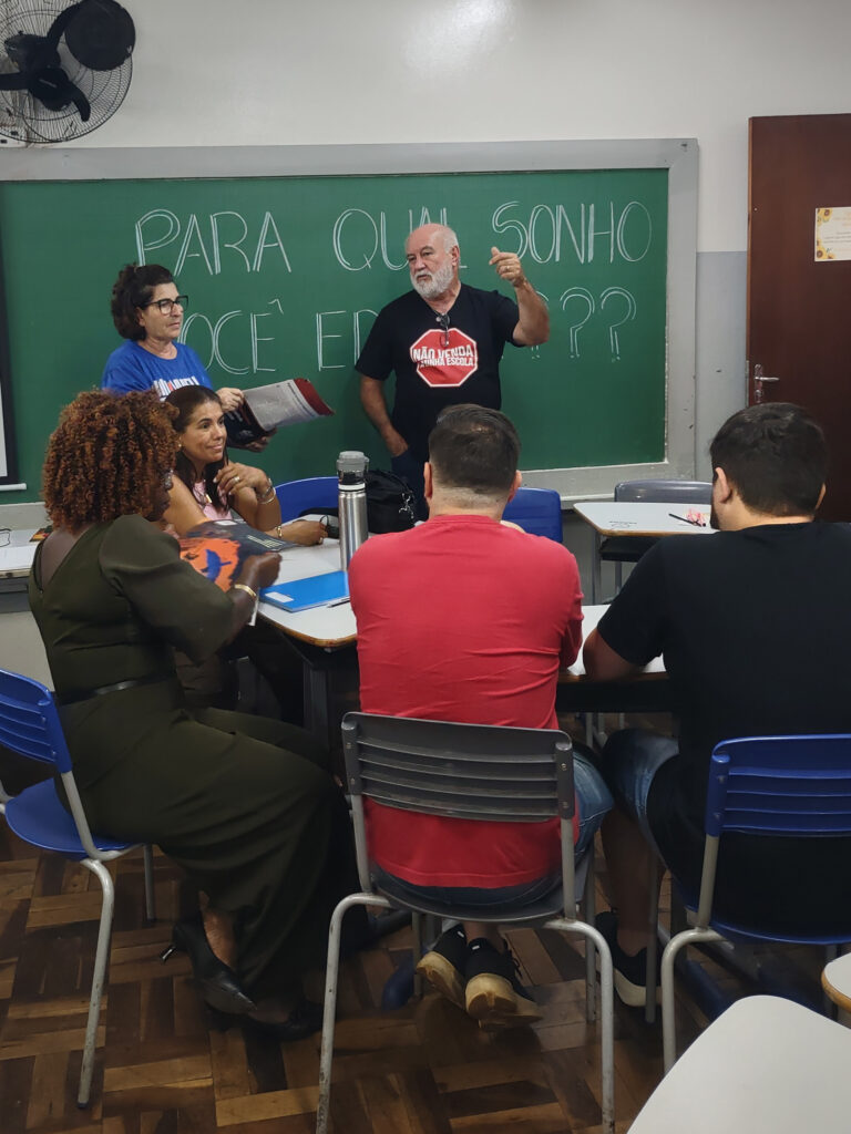 O ano letivo começou e nossos dirigentes estão nas escolas dialogando com professores(as) e funcionários(as) sobre a educação pública que queremos e também sobre as pautas da categoria.